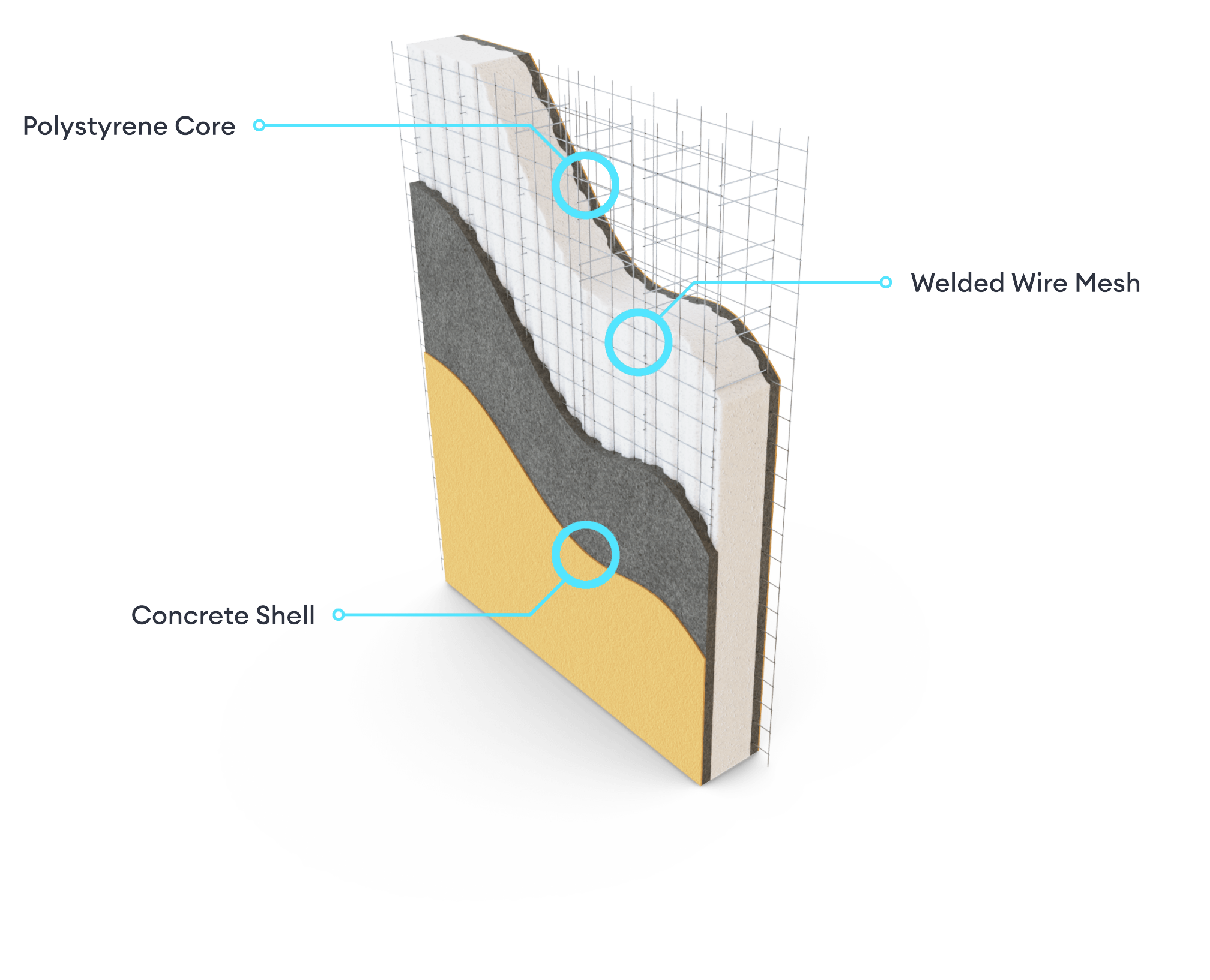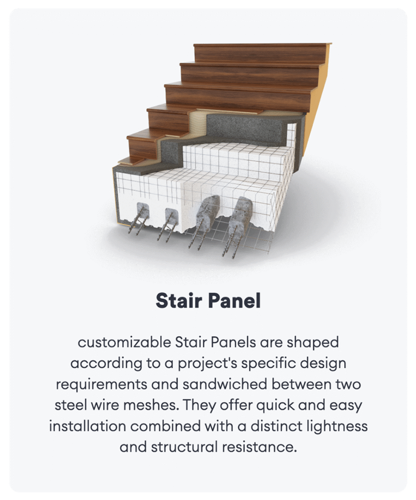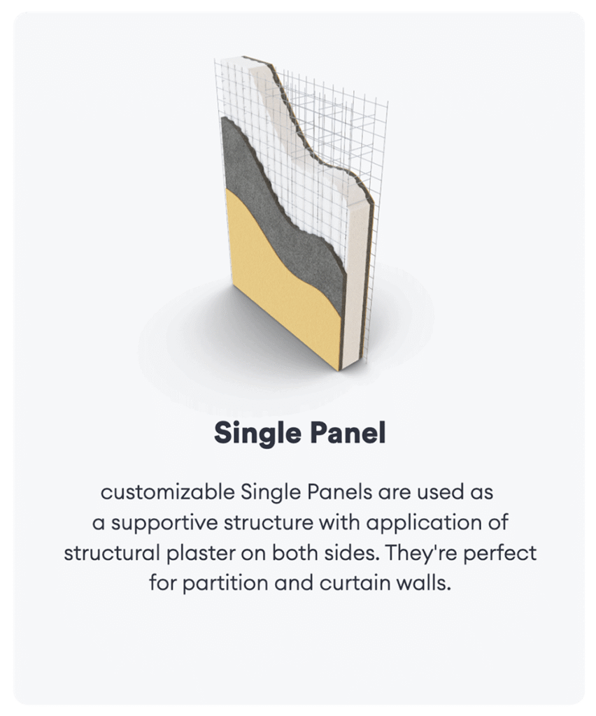 The EPS core provides superior thermal and acoustic insulation, while the mesh and concrete offer robust structural strength — all in a single panel.